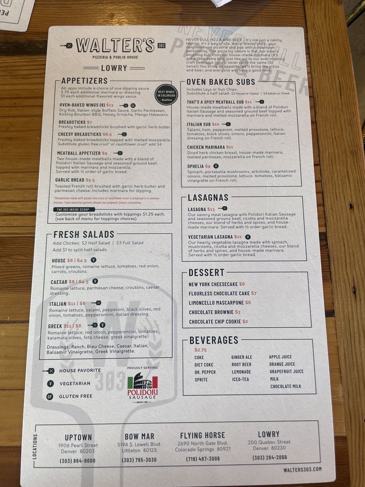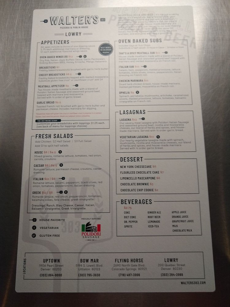 Welcome to Walter’s303 Pizzeria & Publik House Lowry, where delicious meets casual flair. Nestled in the heart of Denver, this vibrant eatery offers a mouthwatering selection of signature pizzas, chicken wings, and appetizing starters alongside an engaging atmosphere perfect for groups and families.